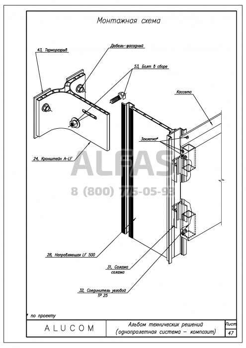 Фасадная система Alucom LF 500 под Алюминиевые композитные панели