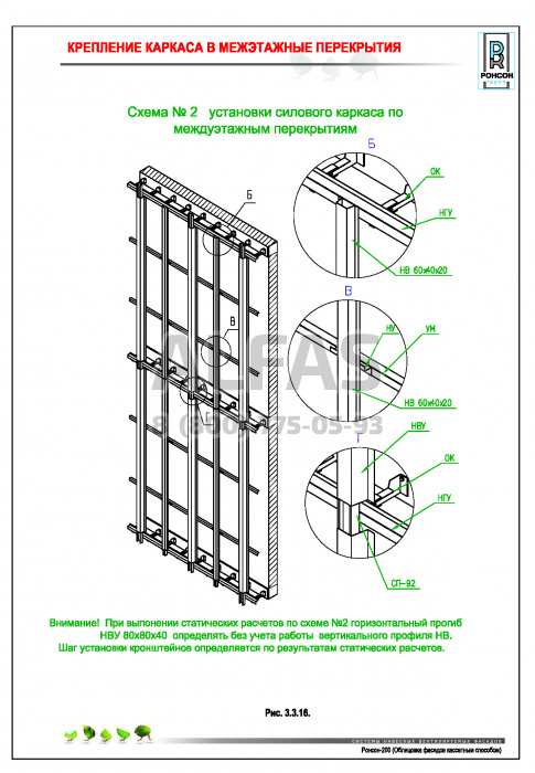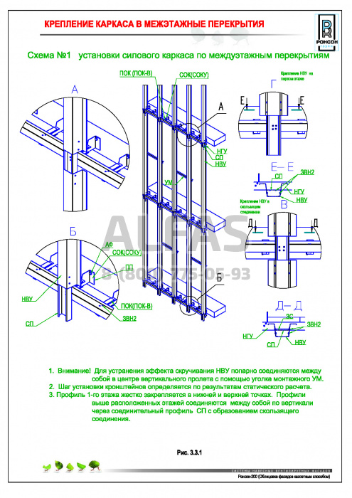 Возможна система крепления как по всей поверхности стены, так и исключительно в межэтажные перекрытия.