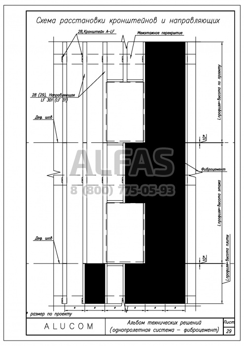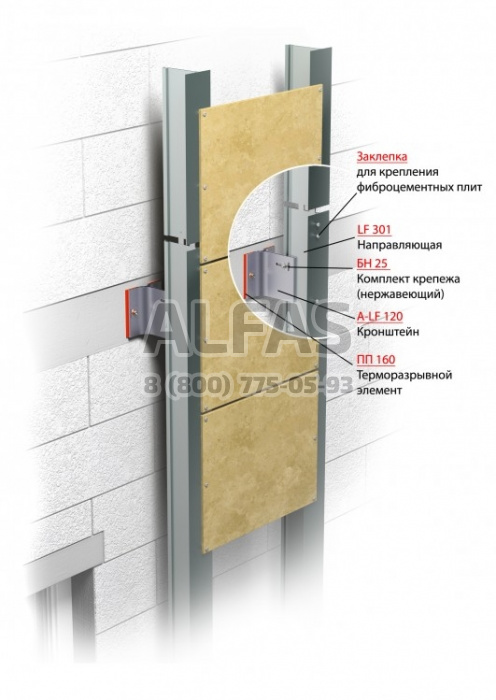 Alucom LF 301 – алюминиевая подоблицовочная конструкция, с креплением только в межэтажные перекрытия.