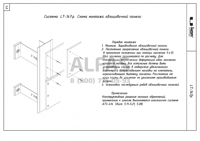 Система предназначена для крепления облицовки выполненной из плоских листовых материалов, применяемых для облицовки фасадов.