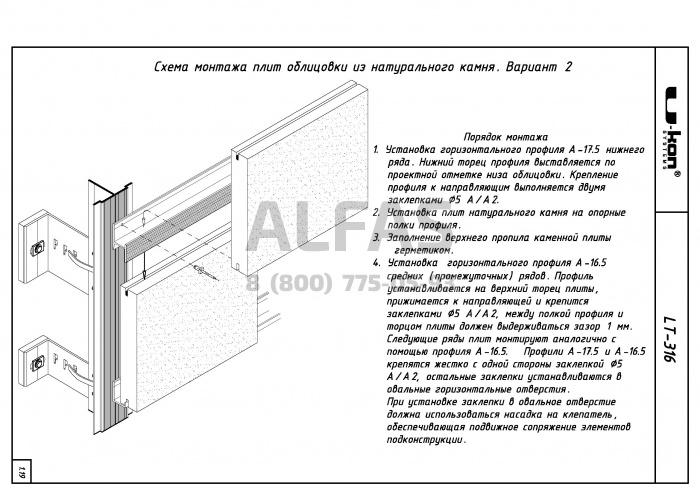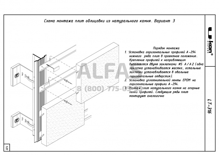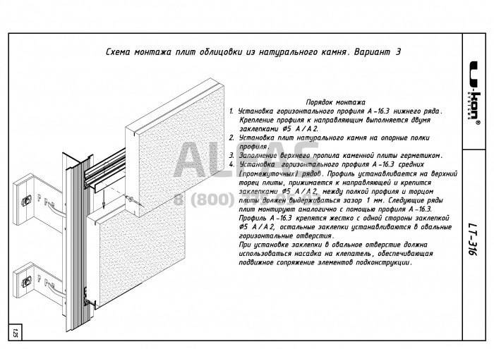 Фасадная система U-kon LT-316 под Натуральный камень