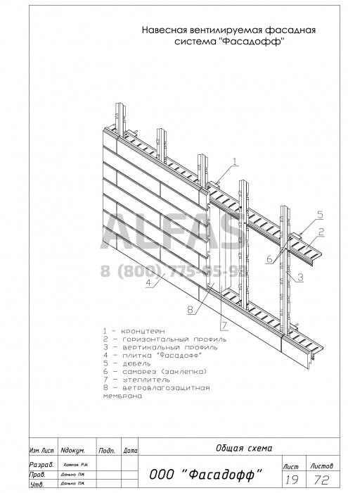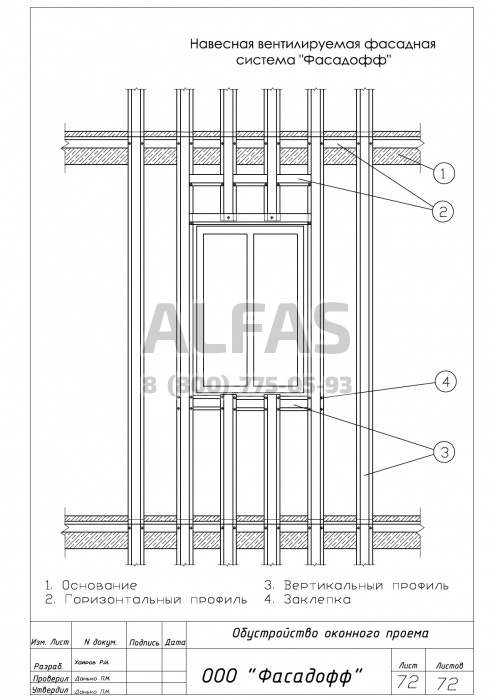 Элементы навесной вентилируемой системы: - паронитовая прокладка; - кронштейн; - горизонтальный профиль; - вертикальный профиль; Дополнительные элементы: - стальные профили для обрамления оконных и дверных проемов; - подоконники, оконные сливы; - крепежные элементы (анкера, саморезы, заклепки)