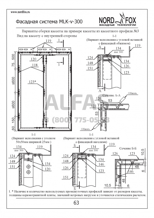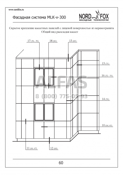 Способ крепления облицовочного материала: в кассетах из алюминиевых профилей.