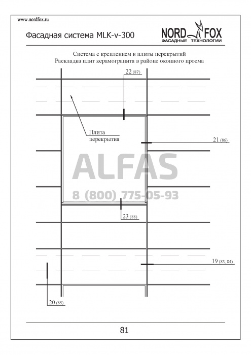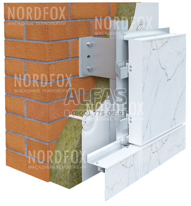 Вынос облицовочного материала от плоскости стены: 135—588мм.